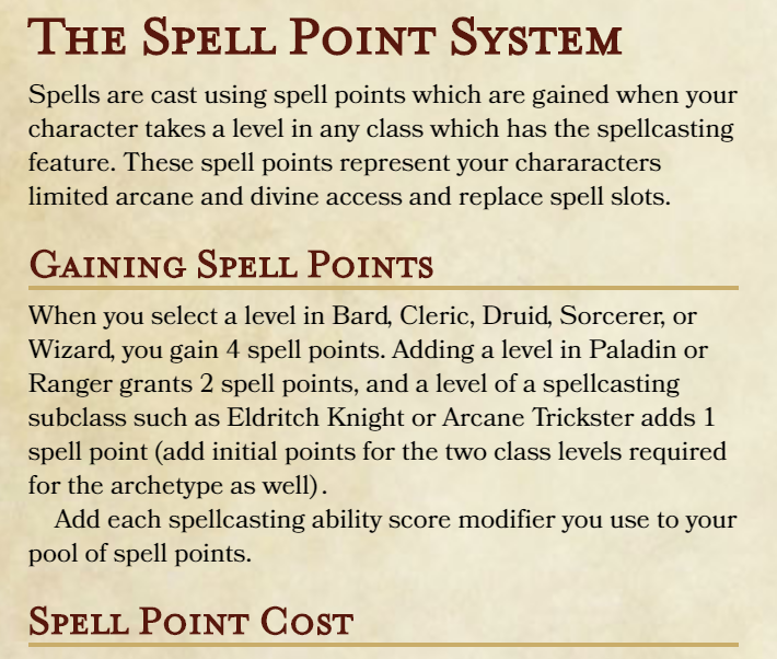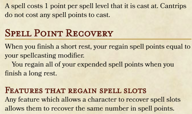 After a long rest and two short rests, he would the ability to spend 36 points (14 + 4* + 5 + 4* + 5 + 4*) as well. The same holds true for caster archetypes for the fighter, rogue, and blood hunter classes. If i made this change, i'm not sure how many points i would have the sorcerer.